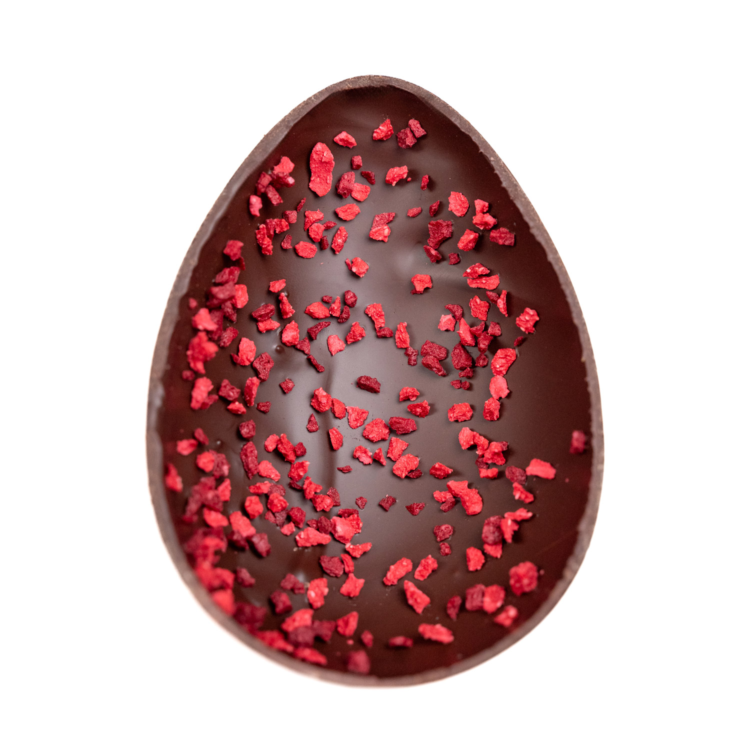 Uovo di cioccolato fondente 70% Madagascar con frutta rossa